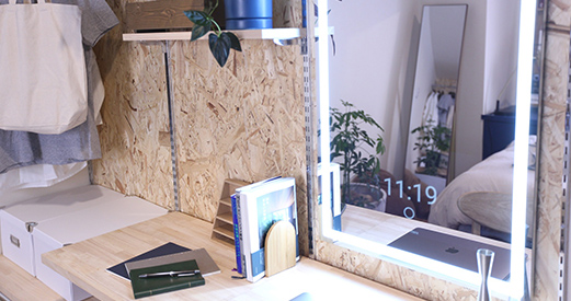 充実したワークスペースとリビングにより、お部屋はすっきりシンプルに