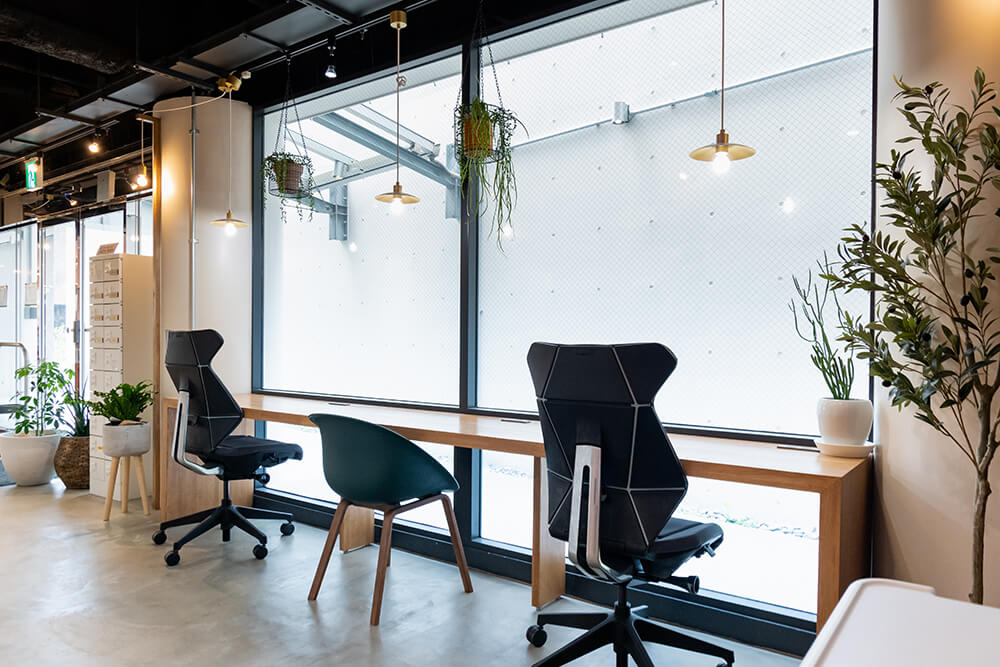気分と内容に合わせてカフェや見晴らしよいリビングも使えます